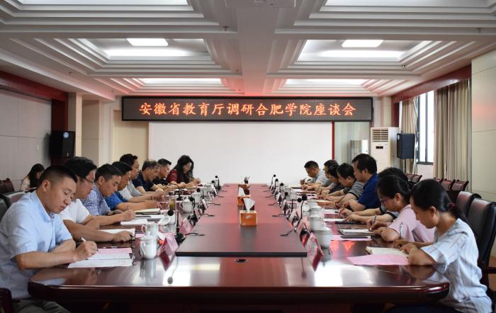 7月2日,安徽省教育廳副廳長儲常連攜高教處處長梁祥君、外事處處長丁育紅一行來我校調(diào)研。合肥學院黨委書記蔡敬民、校長王其東于行政樓九樓東會議室熱情會見來賓。校黨委委員、計劃財務(wù)處處長何世昆,黨政辦主任白義香,教務(wù)處處長王曉峰,發(fā)展規(guī)劃處處長繆群道,人事處處長陳愛娟,國際交流合作處處長賈峰,科技處副處長汪潘義,服務(wù)地方辦公室副主任華建兵等陪同調(diào)研。