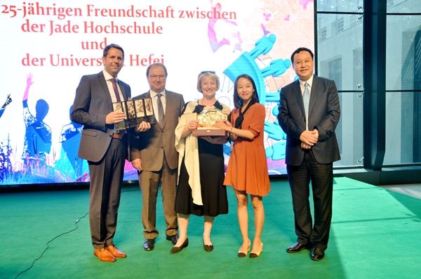 526日,德國下薩克森州經濟、就業與能源部部長奧拉夫·賴斯(Olaf Lies)率下薩克森州經濟代表團訪問我校,為中德合作物流4.0”實驗室揭牌,并參加合肥學院與德國雅德大學結好二十五周年慶典。安徽省外事辦公室副主任張力芳、合肥市副市長吳春梅、安徽省教育廳外事處處長丁育紅應邀出席。