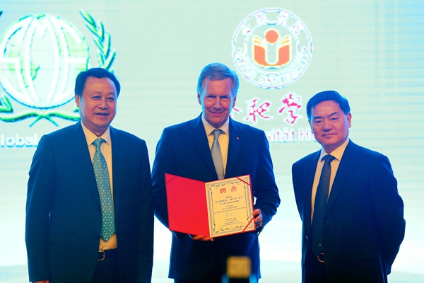 德國前總統、全球中小企業聯盟全球主席武爾夫受聘合肥學院榮譽教授