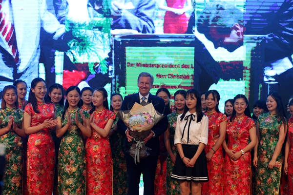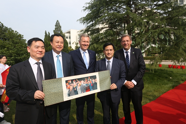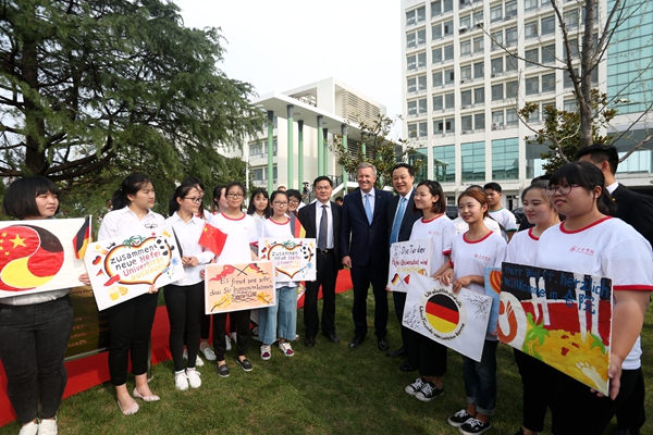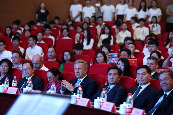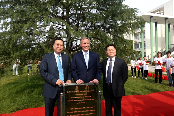 武爾夫主席在合肥學院發表主旨演講。他深情回憶起第一次訪華在學院時種下友誼樹、2008年再次訪華為友誼樹澆水的情景,這也是他種下的第一顆友誼樹。他回憶,第一次訪問學校時,年輕人態度特別的積極,特別的熱情,中國的青年想創造未來,對未來有非常多的期待,給他留下了非常深刻的印象。他在演講中回顧了德國下薩克森州和安徽的合作歷史,雙方在農業、食品加工、機械制造和工業設計等領域開展的全方位合作,為中德交流打下堅實的基礎。他引用李克強總理的比喻說,中德合作要像吃螃蟹那樣,用智慧、技術和耐心把“螃蟹”吃干凈,不能吃一口就算了。因此,德國和中國的交流還有很多領域可以攜手,可以互相借鑒的地方非常之多,雙方可以在新的絲綢之路上加強交流與合作,開創輝煌的未來。