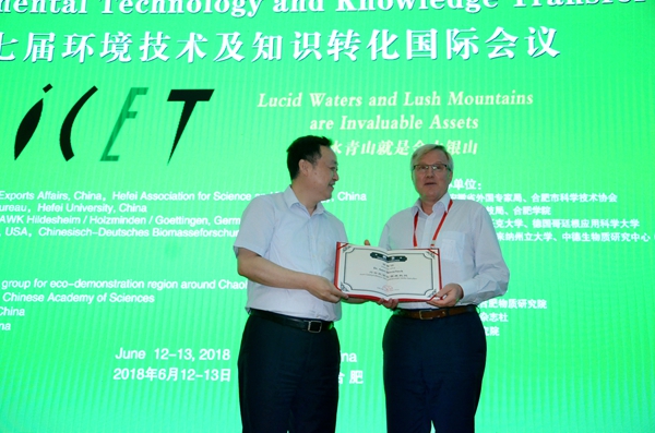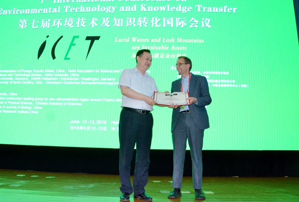 6月13日,第七屆環境技術及知識轉化國際會議在我校二區圖書館學術報告廳A廳圓滿結束。合肥學院黨委書記蔡敬民,德國生物質研究中心主任、德國羅斯托克大學教授萊勒斯,巢湖管理局局長余忠勇等人參加閉幕式。