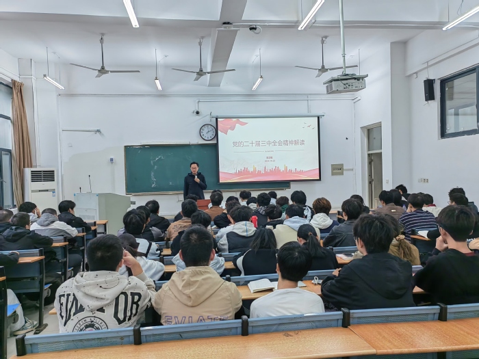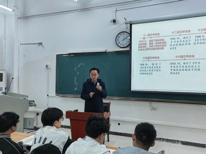 在授課中,吳功福表示,作為擔當強國建設和民族復興重任的時代新人,青年大學生既要有沉心學習、扎實研究的定力,也要有時不我待、勇攀高峰的緊迫感與追求,切實把思想和行動統一到全會精神和黨中央決策部署上來,要深入學習貫徹黨的二十屆三中全會精神,自覺以黨的創新理論凝心聚魂,時刻牢記使命與責任,刻苦學習、胸懷大志,為推進中國式現代化發展貢獻力量。
