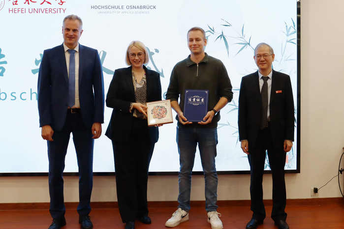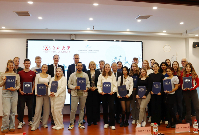 王其東代表學(xué)校對卡塔琳娜·普特市長一行表示熱烈的歡迎,對徽文化秋令營的成功舉辦表示祝賀。他表示,此次交流中德學(xué)生建立起深厚情誼,為日后攜手書寫兩校友誼新篇章打下堅實基礎(chǔ),為雙方未來教育、經(jīng)濟、文化發(fā)展注入了生機與活力。奧斯納布呂克應(yīng)用科學(xué)大學(xué)校長亞歷山大·施梅曼先生在致辭中感嘆中國發(fā)展速度之快,同時也很高興看到合肥大學(xué)的高速發(fā)展變化,希望通過更多形式的交流活動來加深兩校友誼,深化合作與發(fā)展。德國奧斯納布呂克應(yīng)用科學(xué)大學(xué)的學(xué)生代表伊爾薩比·拉德馬赫分享了在合肥大學(xué)交流期間的體驗與感悟,并表示會銘記這段美好回憶。