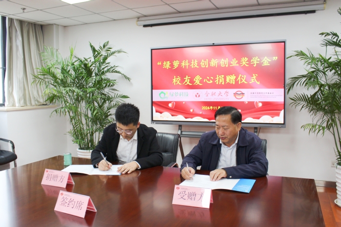 11月15日,我校舉行“綠蘿科技創新創業獎學金”校友愛心捐贈儀式。安徽綠蘿科技有限公司創始人、2009級化工專業校友蔣尚偉,安徽中德教育合作基金會秘書長何世昆,能源材料與化工學院黨委副書記魏安樂及學生處相關負責老師參加捐贈儀式。儀式由基金會管理辦公室主任劉金平主持。