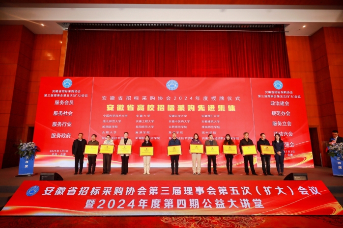 1月3日,安徽省招標采購協會高校采購專業委員會第六次會議暨2024年度安徽省高校采購論壇召開。合肥大學榮獲“2024年度安徽省高校招標采購先進集體”榮譽稱號,這是我校連續四年獲此榮譽。國資處袁園同志榮獲“安徽省高校招標采購先進個人”。