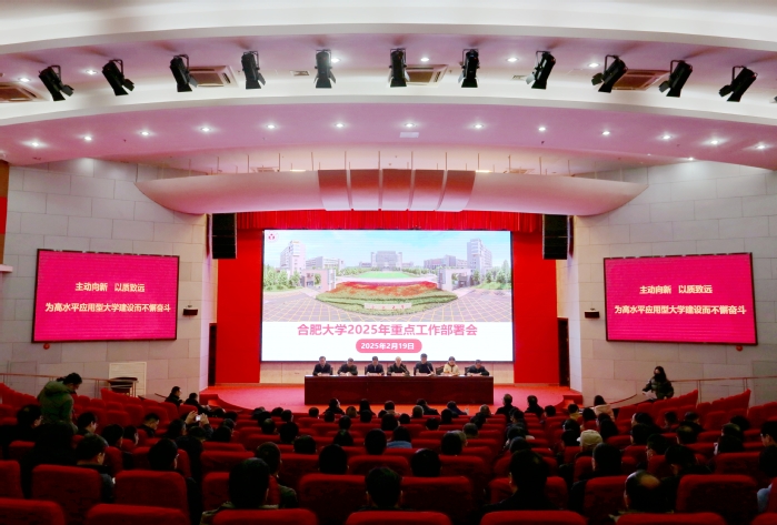 新春伊始,萬象更新。2月19日,合肥大學2025年重點工作部署會在圖書館學術報告廳A廳召開。校黨委書記王其東主持會議并講話,校黨委副書記、校長任永作題為《主動向新 以質致遠 為高水平應用型大學建設而不懈奮斗》的報告,為2025年全校工作擘畫新藍圖,吹響新號角。王其東在講話中指出,全面扎實做好2025年重點工作要強化黨建引領的“鑄魂、固本、強基”,要提升干部隊伍建設的“能力、活力、合力”,要強化全面從嚴治黨的“責任、紀律、作風”。全體校領導出席會議,全校中層以上干部參加會議。