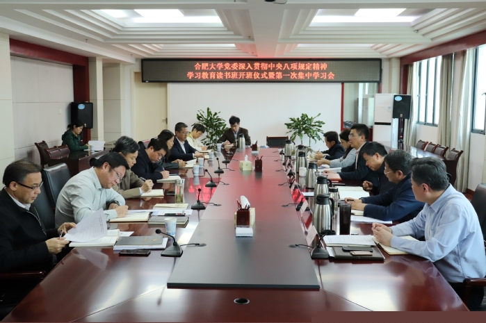 4月7日上午,合肥大學黨委深入貫徹中央八項規(guī)定精神學習教育讀書班開班式暨第一次集中學習在行政樓九樓東會議室舉行。黨委讀書班采用集中學習、自主學習和集中研討相結(jié)合的方式,黨委理論學習中心組全體成員參加。