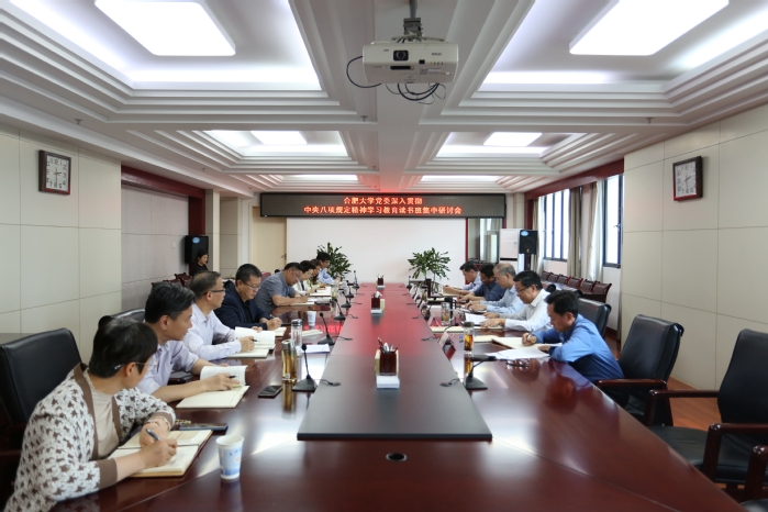 4月11日下午,合肥大學黨委深入貫徹中央八項規定精神學習教育讀書班集中研討會在行政樓九樓東會議室舉行。校黨委書記王其東主持會議,黨委理論學習中心組全體成員參加。