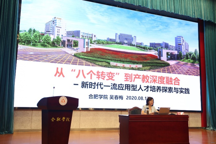 合肥學(xué)院校長吳春梅首先作了《從“八個(gè)轉(zhuǎn)變”到產(chǎn)教深度融合——新時(shí)代一流應(yīng)用型人才培養(yǎng)探索與實(shí)踐》的報(bào)告。她強(qiáng)調(diào),應(yīng)用型高校的首要任務(wù)是培養(yǎng)應(yīng)用型人才,要堅(jiān)持將深化產(chǎn)教融合、校企合作作為學(xué)校發(fā)展、人才培養(yǎng)的動力之源和目標(biāo)所向,在地方產(chǎn)業(yè)集群建設(shè)和園區(qū)、企業(yè)發(fā)展中,找準(zhǔn)并不斷夯實(shí)學(xué)校的辦學(xué)定位和發(fā)展方位,著力提升應(yīng)用型高校在地方經(jīng)濟(jì)社會發(fā)展中的參與度和貢獻(xiàn)率。