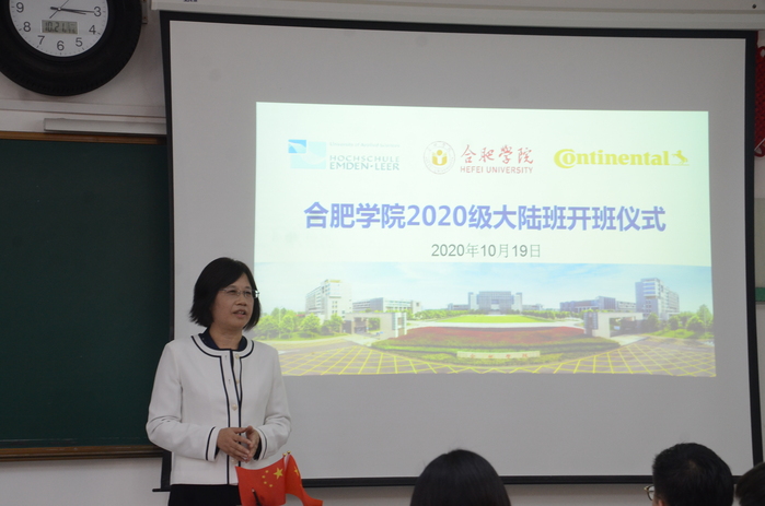 10月19日,合肥學院2020級(第五屆)大陸班開班儀式在二區生化樓220教室舉辦。合肥學院校長吳春梅、副校長陳秀、德國大陸馬牌輪胎(中國)有限公司總經理王小驥應邀出席。先進制造工程學院院長呂剛主持儀式。