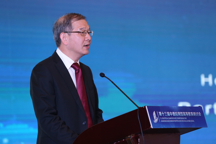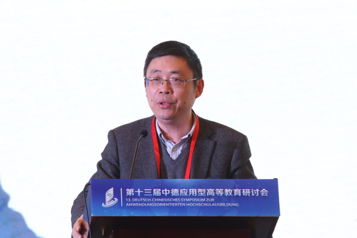 開(kāi)幕式后,在大會(huì)主旨報(bào)告環(huán)節(jié),五位專家結(jié)合自身研究領(lǐng)域分享了對(duì)應(yīng)用型高等教育的思考。德國(guó)馬格德保應(yīng)用科學(xué)大學(xué)副校長(zhǎng)丁永健圍繞“新形勢(shì)下中德高校合作前景以及德國(guó)應(yīng)用科學(xué)大學(xué)的角色”展開(kāi)介紹。他表示,國(guó)際關(guān)系在很大程度上取決于經(jīng)濟(jì)合作,中德雙方在經(jīng)濟(jì)領(lǐng)域具有多方面、多領(lǐng)域的合作,這也為中德高校教育合作提供了堅(jiān)實(shí)的基礎(chǔ)。在未來(lái),中德高校間的合作交流會(huì)持續(xù)進(jìn)行、不斷深化,共同推動(dòng)中德教育的發(fā)展進(jìn)步、合作共贏。