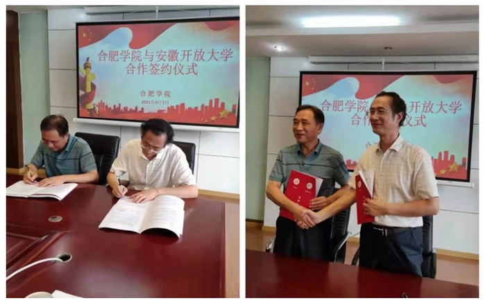 會(huì)議最后,我校與安徽開(kāi)發(fā)大學(xué)就“共享課程資源,共促繼教發(fā)展”簽訂了合作協(xié)議。