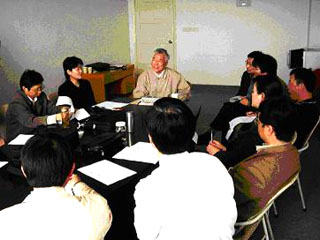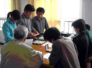 專家組組長錢源誠教授(中)和專家組老師討論評分細則