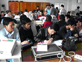 參賽的同學(xué)在緊張的準(zhǔn)備,等待作品測試