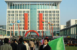11月20日,合肥學(xué)院南校區(qū)內(nèi)彩旗招展,教學(xué)主樓廣場前“2006年安徽高校畢業(yè)生綜合類就業(yè)市場”的巨幅彩虹門格外顯眼,主干道兩邊草地上“工業(yè)立市、科技創(chuàng)新”、“育人為本,德育為先,教學(xué)為綱”的彩色展板彰顯我市走工業(yè)化道路和我院人才培養(yǎng)戰(zhàn)略的信心和前景。