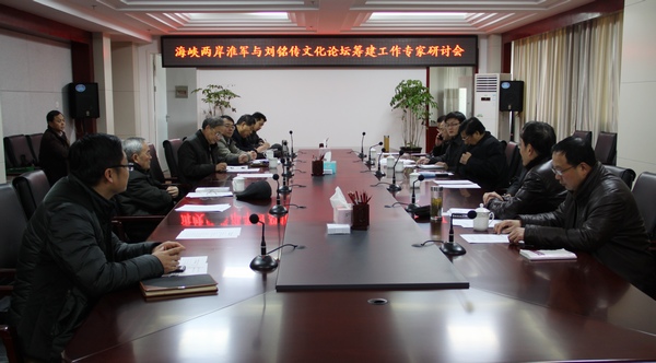 1月24日,海峽兩岸淮軍與劉銘傳文化論壇籌建工作專家研討會在合肥學院行政樓會議室召開。安徽省社科聯歷史文化研究中心主任翁飛研究員,安徽省社科院原副院長唐先田研究員,《江淮論壇》主編、安徽省社科院黨組成員計永超,安徽大學徽學研究中心主任卞利教授,合肥市臺灣事務辦公室副主任胡衛平,肥西縣志辦公室原主任馬騏,臺灣徽商經貿文教交流協會名譽會長王維續,臺灣徽商經貿文教交流協會副會長、兩岸交流發展基金會執行長胡駿,兩岸交流發展基金會財團經理巢陽參加會議。合肥學院院長張文兵教授、副院長陳秀教授出席,院科技處、臺辦及省級人文社科研究基地負責人等參會。會議由院省級人文社科研究基地負責人何峰教授主持。陳秀副院長在會上表示,學院非常重視海峽兩岸劉銘傳論壇的籌建工作,也非常感謝各位專家對合肥學院人文社科工作的支持和指導。我們會采納各位專家的指導性建議,著力推進論壇的組建和人文社科學術平臺的打造。