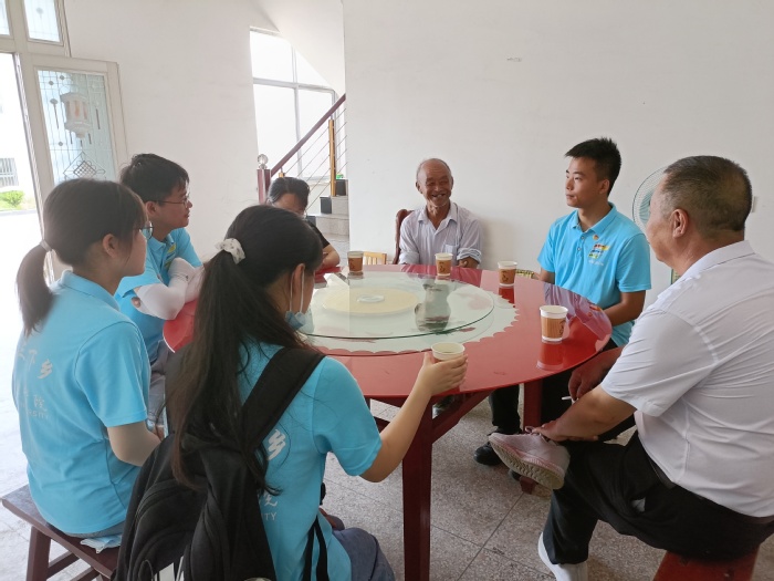 6月27日,團隊在岳西縣蓮云鄉長生村黨支部書記的帶領下先后走訪了王會芳、儲德節、儲德旺、儲東初、王蘭芳五位老黨員。1973年入黨的王會芳曾是婦聯鐵娘子軍的一員,跟隨鐵娘子軍興建地方水庫;1971年入黨的儲德節于1968年入伍,成為為一名鐵道兵,從軍的五年間參與修建極具戰略意義的成昆鐵路;1991年入黨的儲德旺曾帶頭種植上千畝樹苗,樹林極大改善了岳西縣的環境;2000年入黨的儲東初,從軍22年;1972年入黨的王蘭芳曾是民兵營副營長,在崗多年一直發揮著黨員的先鋒模范作用。老黨員們有的已經身形佝僂,有的已經口齒不清,但他們的眼中依然蘊含著熠熠光芒。他們囑咐隊員們要勤于奉獻、勇于擔當,敢于在急難險重的任務中挺身而出,充分發揮先鋒模范作用,為推進國家事業發展貢獻力量。