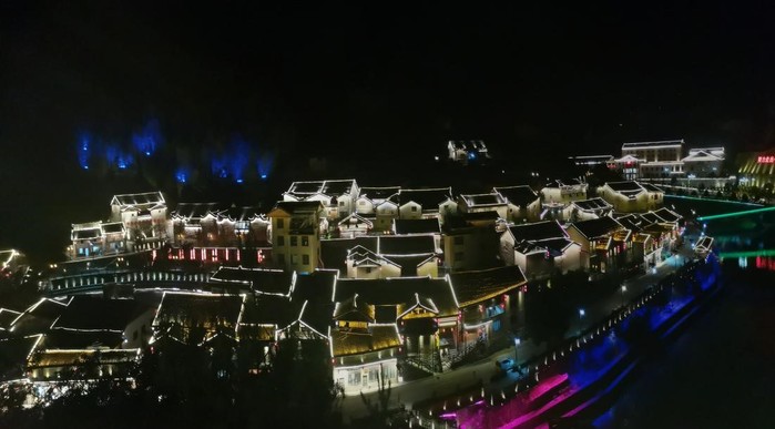 當夜幕降臨,房燈、街燈、多彩景觀燈,一盞盞燈次第亮起,小山村瞬間璀璨無比。漫步修竹溪畔,水映燈火,風動影搖,夜色迷人。