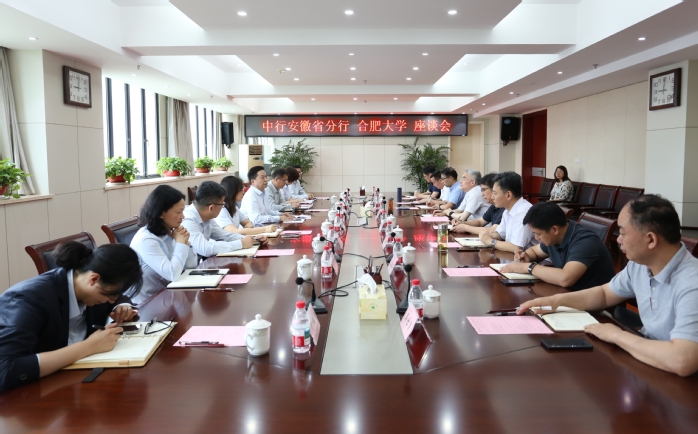 6月13日,中國銀行安徽省分行黨委書記、行長王才先一行來校交流,我校在行政樓九樓西會議室召開座談會,黨委書記鄔平川出席并主持會議。