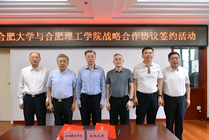 6月21日上午,合肥大學與合肥理工學院戰略合作協議簽約活動在我校行政樓九樓東會議室舉行。合肥市委副書記、合肥理工學院黨委書記路軍,合肥理工學院黨委副書記、院長吳玉程,合肥理工學院黨委副書記、副院長李先強,合肥大學黨委書記鄔平川,合肥大學黨委副書記、校長任永,合肥大學黨委副書記周飛出席活動。簽約活動由鄔平川主持。