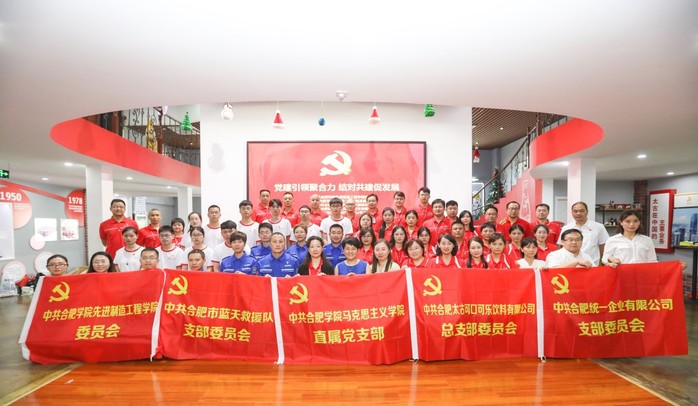 今年是中國共產黨成立一百周年,也是“十四五”開局之年和全面建設社會主義現代化國家新征程開啟之年。為深入學習黨史,歌頌黨的光輝歷程,激勵師生黨員及企業員工堅定理想信念,凝聚磅礴力量。6月24日下午,合肥學院先進制造工程學院黨委、馬克思主義學院直屬黨支部與太古可口可樂公司總支委、合肥市藍天救援隊支委、統一企業有限公司支委聯合開展了“黨建引領聚合力,結對共建促發展”的主題黨日活動。合肥學院先進制造工程學院黨委書記杜娟、馬克思主義學院院長胡艷萍,太古可口可樂公司黨總支書記夏敏、人力資源總監賈真珍,藍天救援隊隊長蘇琴、支部書記劉曉東,統一企業有限公司工會主席闞冬芹、支部書記丁偉偉及五家單位的黨員代表共50余人參加了本次活動。
