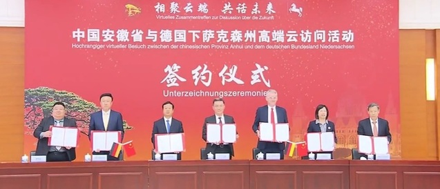 7月16日,安徽省與德國下薩克森州以視頻方式舉行“相聚云端 共話未來—中國安徽省與德國下薩克森州高端云訪問活動”。省委書記李錦斌、省長王清憲、下薩克森州州長施特凡·魏爾、副省長章曦、中國駐漢堡總領(lǐng)事杜曉暉、德國駐上海代總領(lǐng)事唐孟思和合肥學(xué)院校長吳春梅等出席活動。