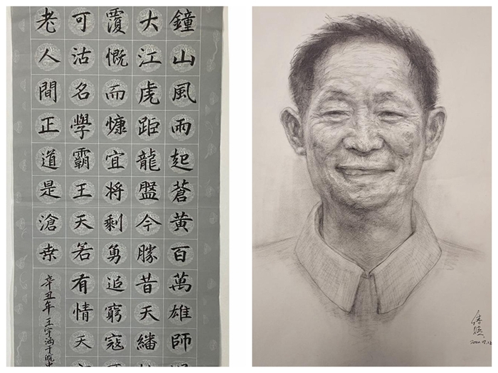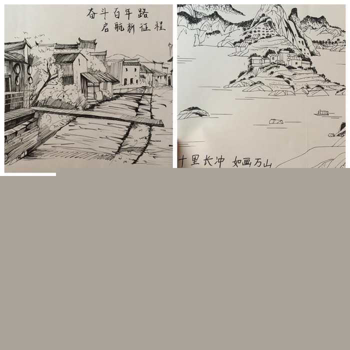 在完成金絲皇菊的包裝設(shè)計和周邊文創(chuàng)產(chǎn)品設(shè)計后,團隊成員還舉辦了主題為“禮贊建黨百年,書畫美麗鄉(xiāng)村”的慶祝建黨100周年書畫和手工作品展。同學們緊扣“農(nóng)業(yè)、農(nóng)村、農(nóng)民”主題,突出建黨100年來我國農(nóng)村翻天覆地的變化?;顒又校蠹覝蕚淞烁魇礁鳂拥墓ぞ?,如超輕粘土、卡紙、膠水等等,充分發(fā)揮專業(yè)特長,在三天時間內(nèi)完成了繪畫、書法、手工作品共60余件,準備近期在萬山鎮(zhèn)文化館展出。