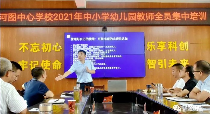 活動期間,河圖中心學校組織開展2021年教師集中培訓,能源材料與化工學院黨委副書記魏安樂作以《中小學教師常見心理問題及解決》為題的報告,報告深入剖析了教師常見心理問題,探討教師心理問題產生的原因、影響及應對方法。