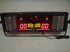 功能:無線遙控,雙方比分增或減、和時間設定及顯示,并帶有比賽顯示紅、黃牌功能,運動員交換場地比分反轉功能,超大LED顯示屏。可連接重復燈,適用于花、重、佩三個劍種使用