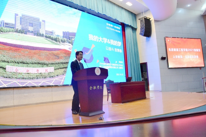 講座上,李新利為2021級新生作“我的大學&我的夢”主題經驗分享。他和新生們分享了自己的大學生活和創業歷程、職業發展心得體會,建議同學們堅持自己所學專業,結合專業做好職業生涯規劃。同時,他對于豐富大學生活、專業學習技巧、參與第二課堂和培養個人愛好等提出了自己的建議。發言中,他衷心表達了對母校的美好祝愿,并表示會為學校應用型高水平大學建設貢獻校友的一份力量。