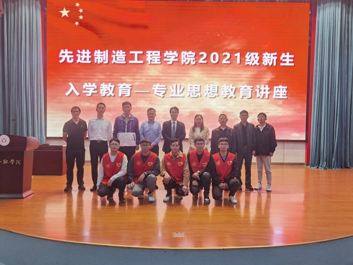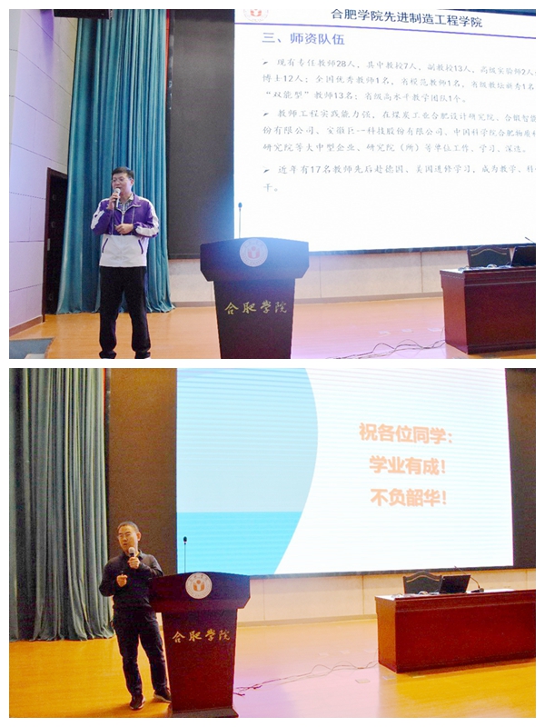 先進制造工程學院戴淮初、李尚榮向新生詳細介紹了機械設計制造及其自動化專業、機械電子工程專業發展概況、發展前景和人才培養方案等相關內容,2021級新生班主任胡正東、李偉與新生進行了親切交流。