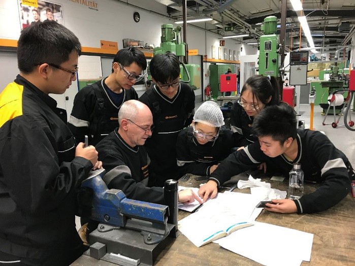 “大陸班”借鑒德國經驗,引入優質德國辦學資源和人才培養模式,采用德國“雙元制”高等教育課程,共同培養具有國際化競爭力的優秀高素質現代新型工程科技人才。我校以“雙元制”人才培養模式改革,推進校企協同育人、產教深度融合的探索實踐,開創了育人新模式。學校根據產業需求制定培養目標,實施“多場景、多目標”培養模式,“四個協同”培養過程,充分展現產學研用深度融合的協同育人機制。