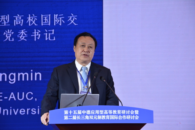 Prof. Dr. Cai Jingmin, Vorsitzender der Vereinigung für internationalen Austausch der anwendungsorientierten Hochschulbildung der Chinesischen Bildungsvereinigung für internationalen Austausch, gab einen Vortrag mit dem Titel ?überlegung zur hochwertigen Entwicklung von anwendungsorientierten Hochschulen in China“. Er war der Meinung, dass die lokalen Hochschulen die Entwicklung mit ihren Eigenschaften f?rdern und die Umwandlung mit ihren Dienstleistungen anstreben sowie den marktorientierten Status des Hauptteils manifestieren sollten. Um eine qualitativ hochwertige Ausbildung anwendungsorientierter Talente zu verwirklichen, ist es notwendig, mit dem internen Aufbau eines Ausbildungssystems zu beginnen. Er er?rterte die folgenden Themen: Betonung der anwendungsorientierten Ausrichtung der Hochschulen, Hervorhebung der bedarfsorientierten Berufsstruktur, F?rderung der Ausbildungsform der tiefgreifenden Integration von Industrie und Bildung, Vertiefung des Lehrplansystems der modularen Unterrichtsreform, Umsetzung des Lehrmechanismus des ?lernzentrierten Konzepts, Aufbau der ?doppelt kompetenten“ Lehrkr?fte und F?rderung ?zweier offener“ Ressourcen.