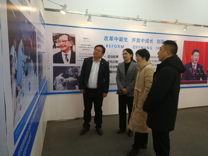 評估期間,陳秀一行陪同評估專家參觀了基金會辦公場所及中德合作共建合肥學院展。