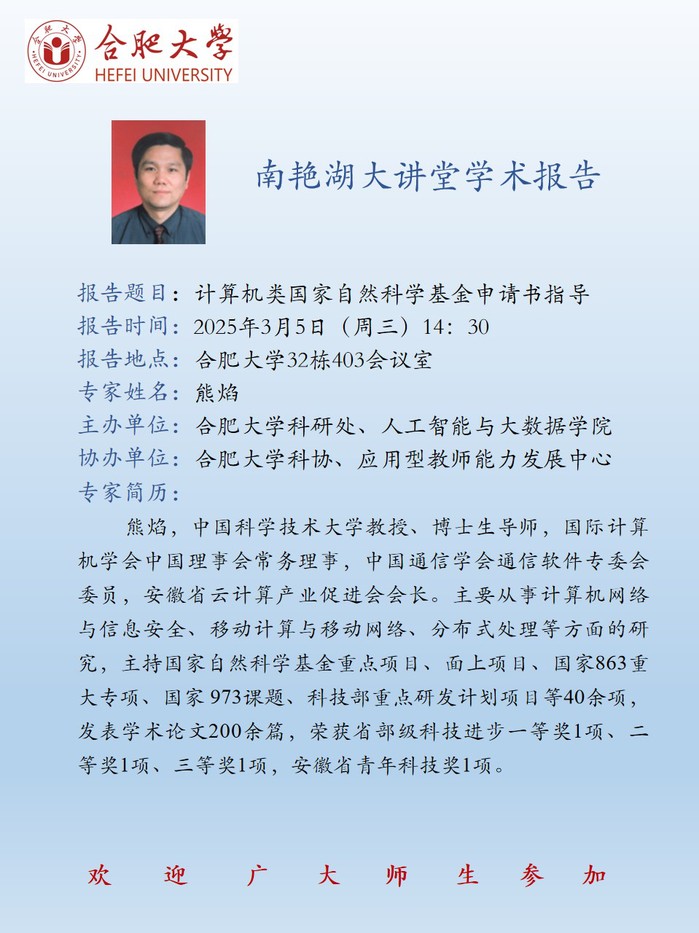 【南艷湖大講堂】計算機類國家自然科學基金申請書指導