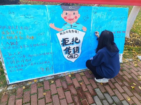 為凈化校園環境、創建和諧平安校園,引導廣大在校師生對傳銷違法犯罪活動不參與、能識別、敢揭發,有效遏制傳銷等違法犯罪活動向校園滲透,10月至12月,合肥學院組織開展了主題為“拒絕傳銷,凈化校園”的校園防范傳銷宣傳教育活動。