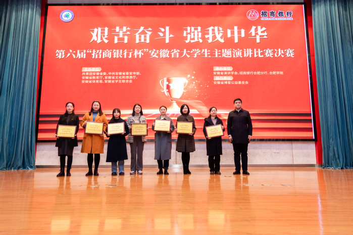 決賽中,參賽選手按照抽題順序開展即興演講,他們以真摯的情感、生動的語言,深情地表達了青年一代立志學習艱苦奮斗的精神,表達了青年人的愛國愛黨之情,體現了當代大學生勇做時代新青年的責任與擔當。當晚,團省委副書記竇賢琨、省委宣傳部、省體育局、招商銀行合肥分行、合肥學院、省演講學會有關負責同志出席頒獎典禮,為獲獎學生頒獎。