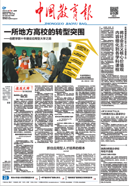 教育部高教司兩次到學校進行專題調研,對學校借鑒德國先進辦學理念,開展應用型人才培養(yǎng)模式改革的情況進行了全面的總結,形成了專題調研報告。2014年,學校獲國家教學成果一等獎(省屬高校唯一),校黨委書記蔡敬民教授作為高校代表,在人民大會堂得到習近平總書記、李克強總理等中央領導人的親切接見。