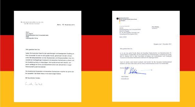 12月7日,德意志聯(lián)邦共和國駐上海總領(lǐng)事館總領(lǐng)事羅騰先生向我校蔡敬民書記轉(zhuǎn)呈了德國總理安格拉·默克爾的感謝信,并表示“期待能與合肥學(xué)院再次合作”。默克爾總理在感謝信中對(duì)我校在她訪問期間所作的精心安排和溫馨感人的接待表示衷心感謝,并表示:合肥學(xué)院與德國高校三十年的合作交流“又一次有力地表明了,幾十年來中國和德國以多姿多彩的方式進(jìn)行了密切的伙伴合作”。“我們很愿意進(jìn)一步擴(kuò)大貴校與德國高校間現(xiàn)有的合作,在此方面,我樂意成為你們的密切合作伙伴”。