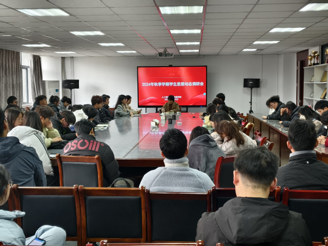 為深入了解學生的思想動態和心理狀況,研究解決學生在思想、學習和生活等方面存在的困惑和問題,12月9日,人工智能與大數據學院在36-305會議室舉行了2024年秋季學期學生思想動態暨學風建設研討會。人工智能與大數據學院黨委書記牛欣,學院黨委副書記、紀委書記姚蓓蓓、學工辦副主任張銀雙以及各班級思政委員參會,會議由張銀雙主持。