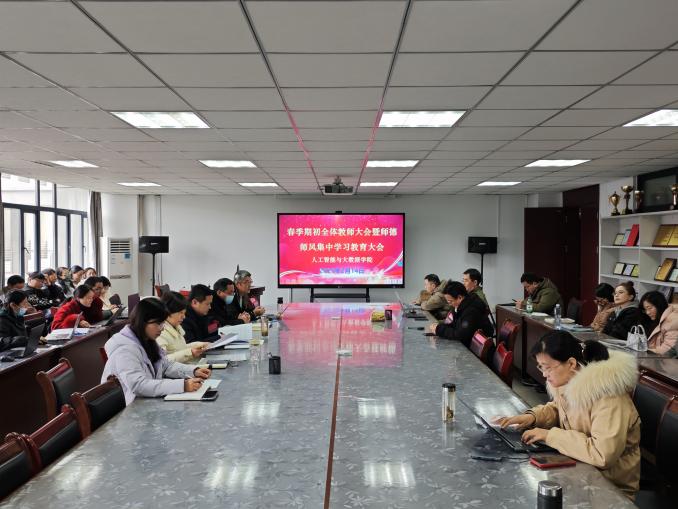 2025年2月14日下午,人工智能與大數據學院在36號樓305會議室召開了2025年春季期初全體教師大會暨師德師風集中學習教育大會,全體教職工齊聚一堂,會議由學院黨委書記牛欣主持。