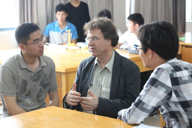 會后,諾貝爾特.拜恩哈德參加電子系答辯會,并向電子系學生詳細介紹光伏這一專業。(學生記者  張俐 羅歡)