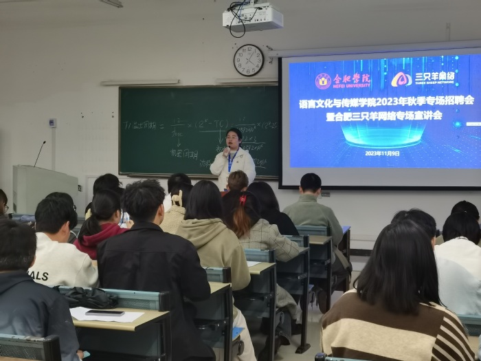 為使學生深入了解用人單位,促進校企合作,強化校友聯系,學院組織合肥三只羊網絡召開專場宣講會。會上,招聘工作人員介紹了公司的企業文化、現有產業結構、組織框架等情況,對學生關注的福利待遇、人力資源政策等作了詳細說明。宣講會結束后,參會學生就崗位條件、晉升發展途徑及薪資待遇等問題開展現場交流。