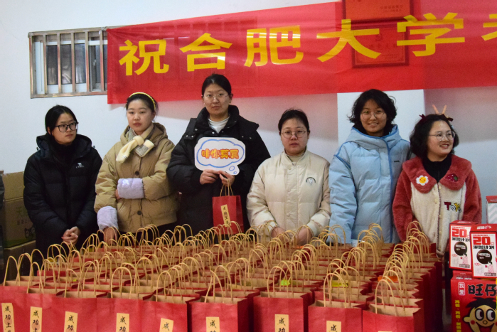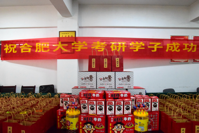 活動現(xiàn)場,“祝合肥大學(xué)考研學(xué)子成功上岸”的橫幅鼓舞人心。一個個祝福語手舉牌飽含著對考研學(xué)子的鼓勵和祝福。桌上,禮包排放整齊,各類零食飲料有序壘起,形態(tài)如山,寓意合大學(xué)子勇攀高峰,摘得理想桂冠。橙子寓意心想事“橙”;旺仔牛奶寄托著“一路旺到底”的美好祝愿;薯片寄寓學(xué)生邁向“心之所薯”……慰問過程中,物業(yè)負責(zé)人與學(xué)生們親切交流,預(yù)祝他們在考試中馬到成功,實現(xiàn)人生理想。收到大禮包后,學(xué)生們紛紛表示學(xué)校太暖心,讓自己堅定了考研的信心,將會以飽滿的狀態(tài)迎接考試。