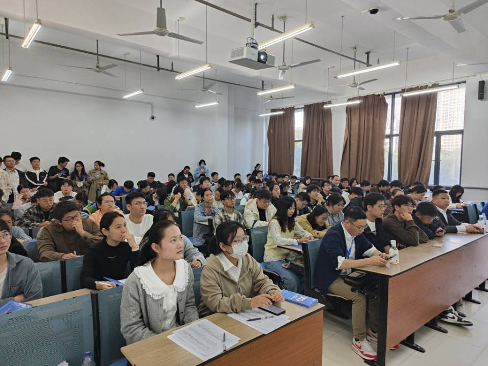 宣講會上,企業負責人詳細介紹了集團發展概況,簡要介紹了總公司的基本情況,圍繞此次招聘崗位、需求專業、崗位職責與要求、薪資待遇等方面進行了重點宣講。宣講結束,現場進行了互動環節,同學們針對工作時間安排、食宿安排以及晉升發展通道等問題進行了交流答疑,現場氣氛熱烈。