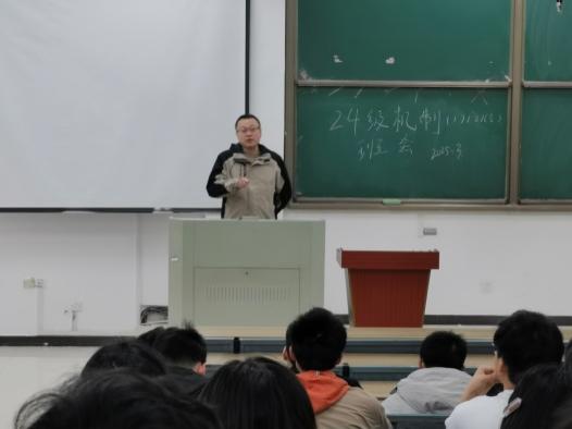 機(jī)制專業(yè)班主任韋韞和宋健跟同學(xué)們介紹了機(jī)制專業(yè)發(fā)展歷史,作為首批國(guó)家級(jí)一流本科專業(yè)建設(shè)點(diǎn),未來(lái)就業(yè)前景很好。希望同學(xué)們?cè)诒緦I(yè)努力學(xué)好專業(yè)知識(shí),積極參加各項(xiàng)學(xué)科競(jìng)賽等科技創(chuàng)新活動(dòng),并在比賽中提高自己的專業(yè)水平、綜合素質(zhì)和團(tuán)隊(duì)合作精神。
