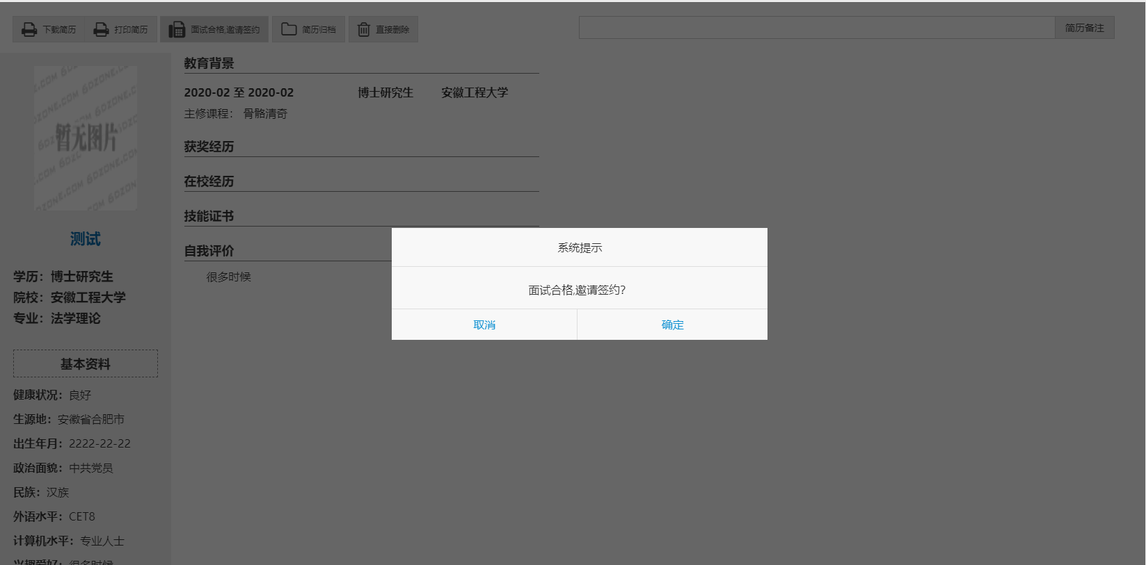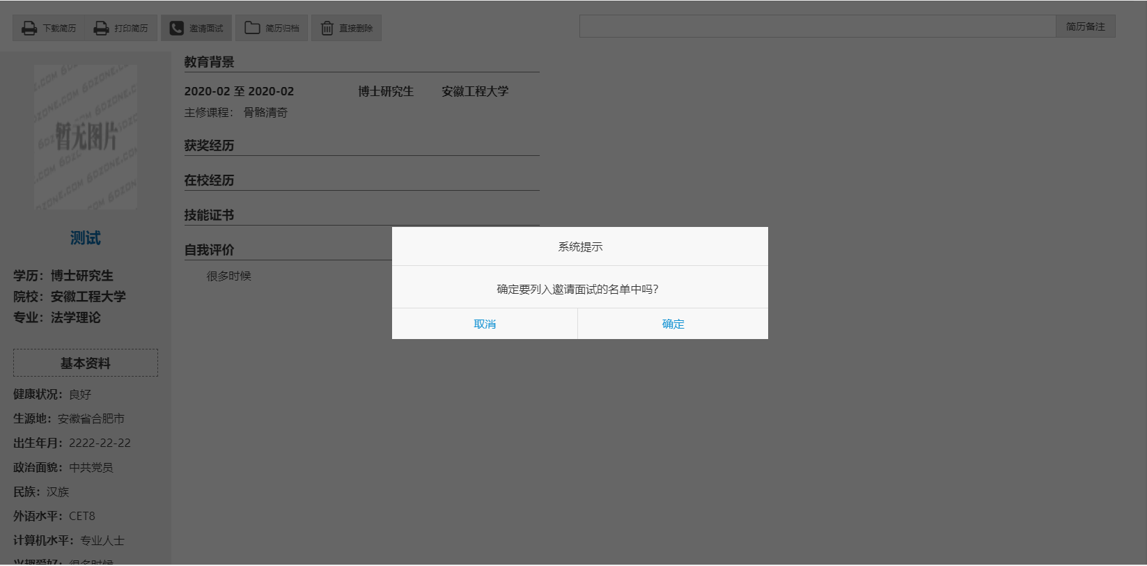 第二步、用人單位登錄校招平臺,查看簡歷,向意向畢業生發送面試邀請。