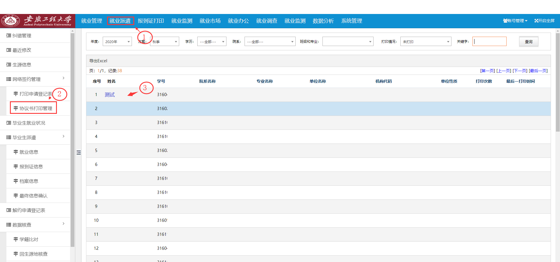 第一步、院系老師和管理員打開協議書打印管理頁面