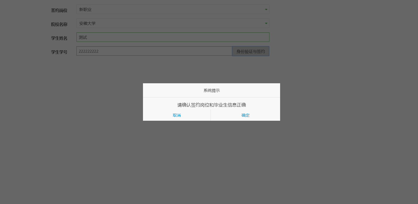 備注:在簽約前請務必在“派遣”“生源信息維護”確認信息與本人信息完全一致,否則不能簽約。