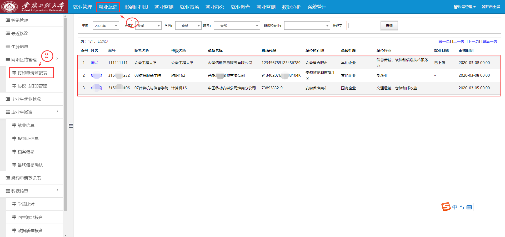 畢業生與用人單位在平臺網簽后,各項就業信息數據直接進入省就業派遣管理系統,學校老師無需再次錄入。